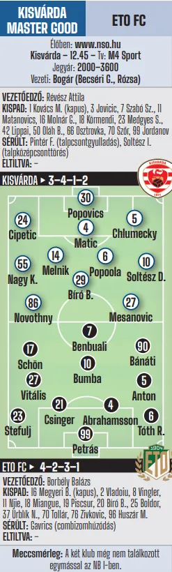 12.45: Kisvárda Master Good–ETO FC (Tv: M4 Sport) – élőben az NSO-n!