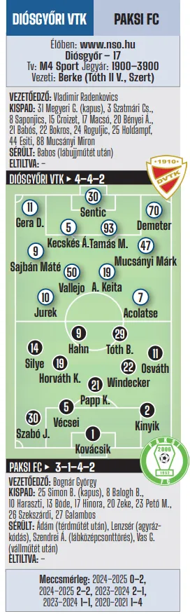 17.00: Diósgyőri VTK–Paksi FC (Tv: M4 Sport)