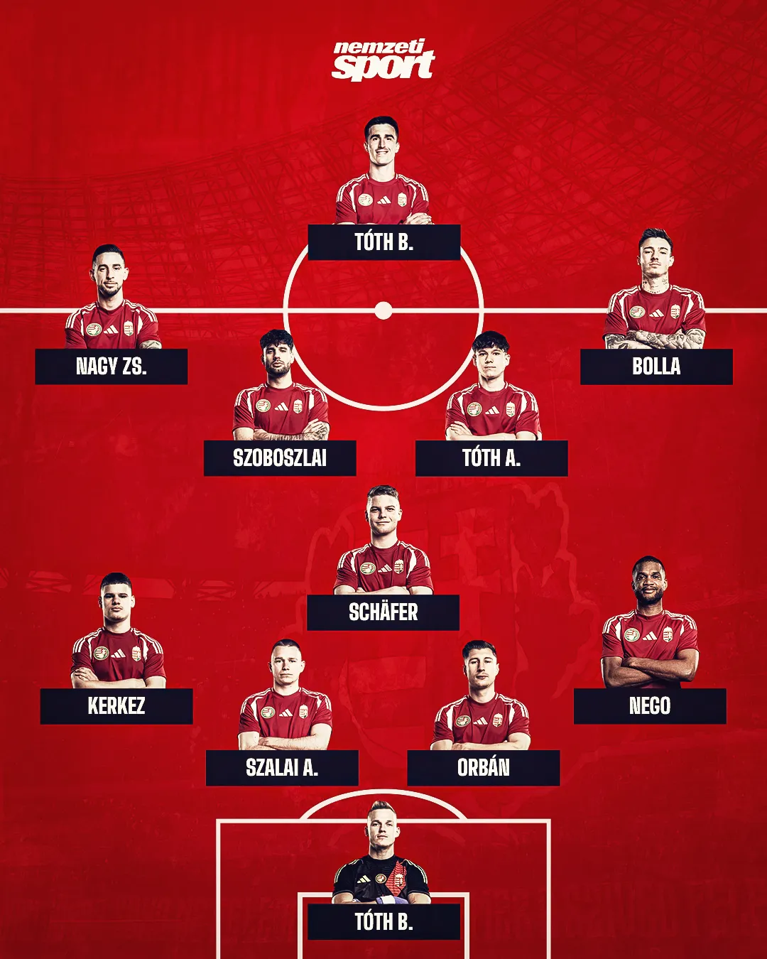 A négyvédős felállásban kézenfekvő, hogy Bolla Bendegúz és Loic Nego is játszik. A francia származású jobbhátvéd kirobbanthatatlan a Ligue 1-ben a kiesés ellen küzdő Le Havre-ból, megbízhatóan futballozik – sajnos éppen a hétvégi, Rennes elleni 2–2-es meccsen lógott ki lefelé a csapatból –, s erre szükség lesz a következő két válogatott meccsen is.