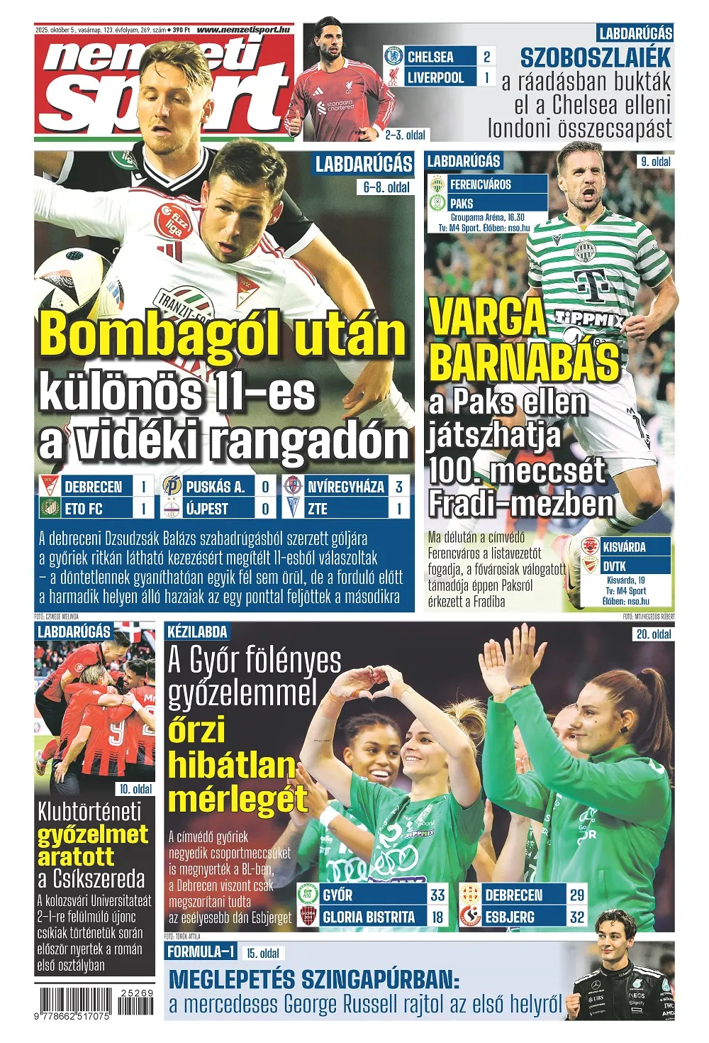 Lassan indult, de az első félidő végétől a lefújásig kiváló iramú játékot hozott a Chelsea–Liverpool rangadó, amelyet a londoniak Estevao 96. percben szerzett góljával megnyertek. Szoboszlai Dominik az első félidőben középpályásként, a másodikban jobbhátvédként futballozott, Kerkez Milost lecserélték, a „vörösök” sorozatban a harmadik tétmeccsüket veszítették el. Részletes beszámoló, reakciók, sajtóvisszhangok a vasárnapi Nemzeti Sportban.